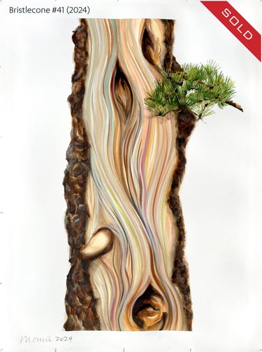 The resilience and survival of the trees in their majestic environment make them one of nature’s most impressive examples of strength and sheer tenacity, continuing to exist against all odds. In my paintings, I reflect my appreciation of the wonder and magnificence of these incredible living trees, truly a phenomenal feat, and an inspiration for us all.