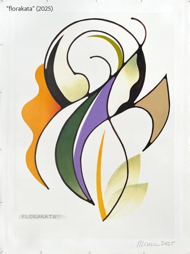 Welcome to my new Flora series of paintings, taking a new and different direction in my art. These paintings reflect my 40-plus years as a commercial graphic designer and bring together my professional past and my present passion. With Flora, I’m incorporating my design discipline with my continuing artistic development. Because these feel more personal, they are named rather than numbered. Each painting has the prefix “flora" with a suffix that rolled off the tongue as the composition evolved. I hope you enjoy this new series.